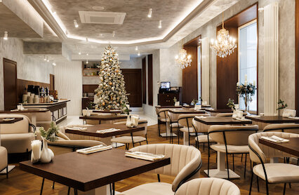 - Ресторан и банкетный зал с европейской кухней при отеле Alex Aqua- Комендантский Проспект