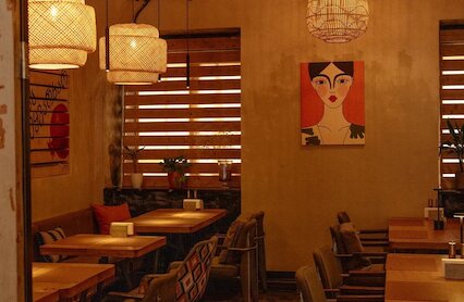 - Трендовый ресторан с дизайнерским интерьером, интересным вином и блюдами из испанского гриля
