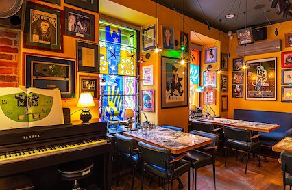 - Кафе-бар с концертами по выходным на Колокольной улице