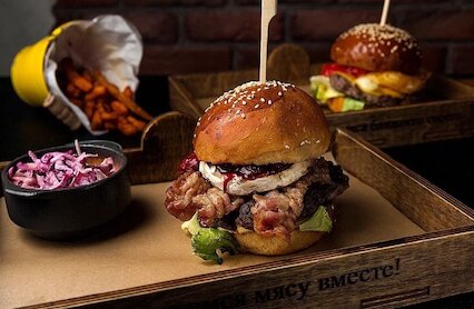- Мясной ресторан с ироничной концепцией, стейками и бургерами на Васильевском острове
