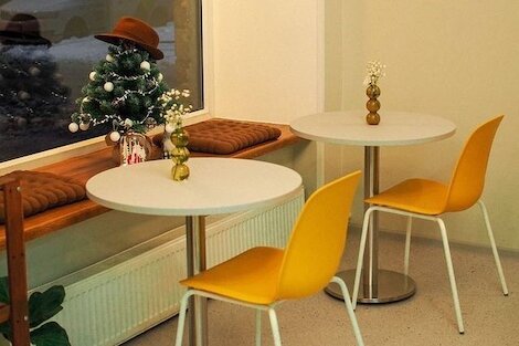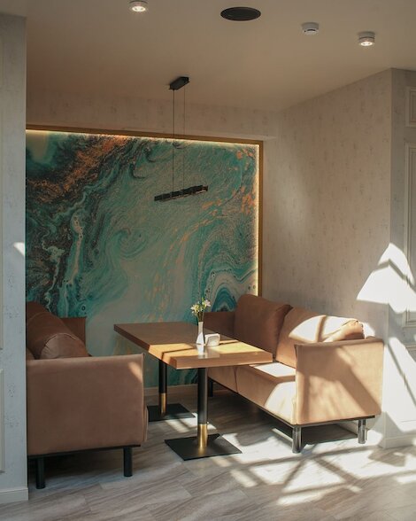 - Светлое кафе со шведским столом и ол-дэй завтраками