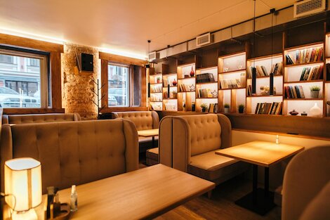 - Сетевой лаунж-бар с полноценным меню и бестабачными паровыми коктейлями на улице Рубинштейна