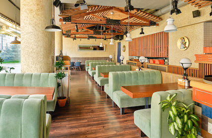- Нарядный ресторан европейско-кавказской кухни с большим банкетным залом