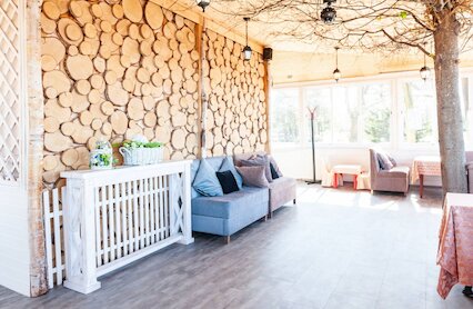- Двухуровневый ресторан с террасой при отеле «Золотой ручей» в Сестрорецке
