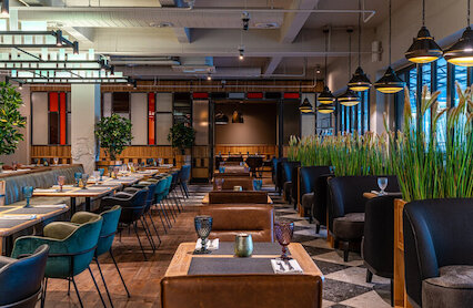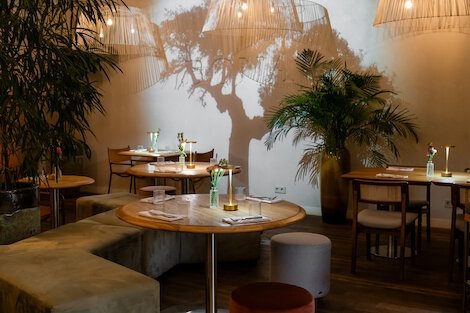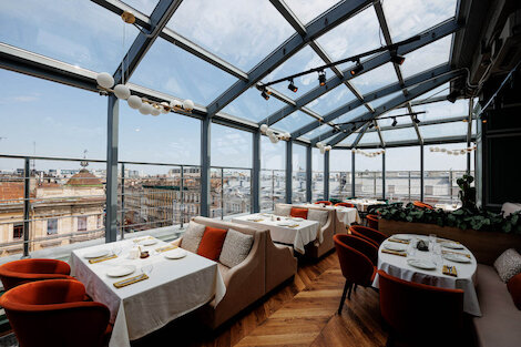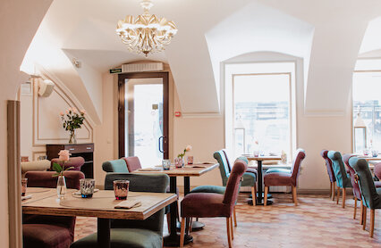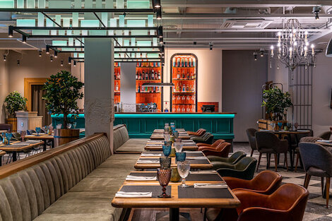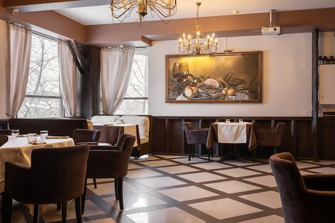 - Ресторан с интерьером начала XX века при одноименном отеле