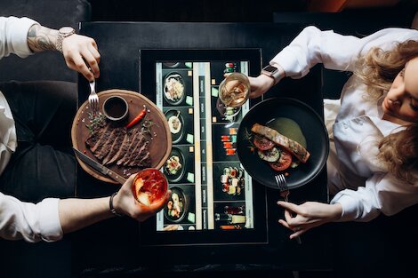 - Ресторан с сенсорными экранами на столах у Сенной площади