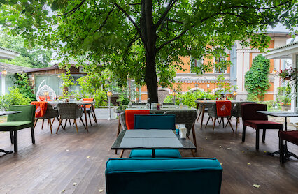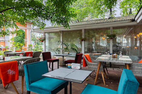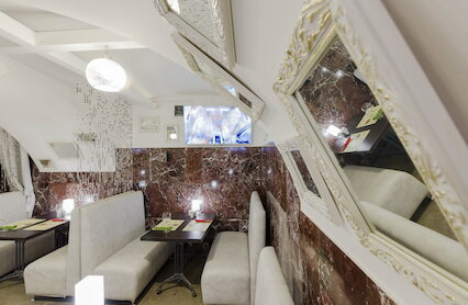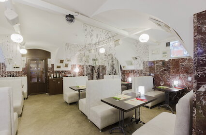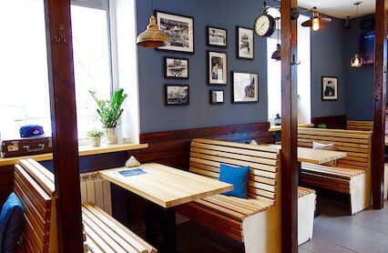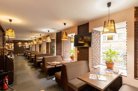 - Демократичное кафе в здании отеля «Друзья» на улице Ломоносова