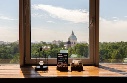 - Панорамный ресторан с видом на Неву на восьмом этаже отеля «Москва»