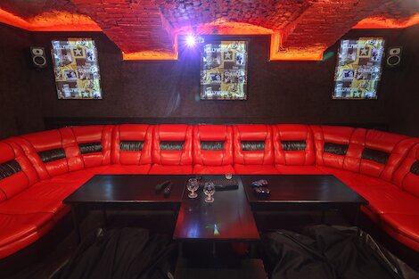 - Круглосуточное караоке-клуб с небольшими зрительными залами на Марата