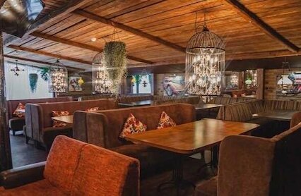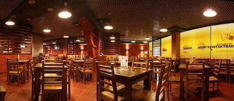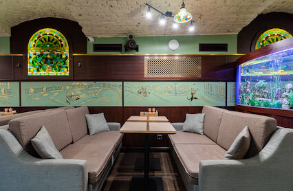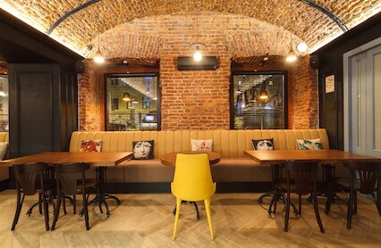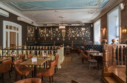 - Двухуровневый ресторан с собственной пивоварней и караоке