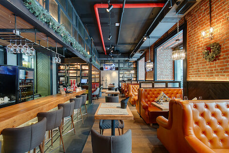 - Масштабный семейный ресторан с универсальным меню и большой коллекцией вин и алкоголя
