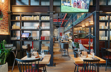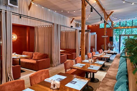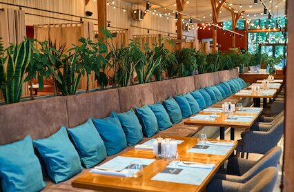 - Ресторан с множеством отсылок к Нью-Йорку в интерьере