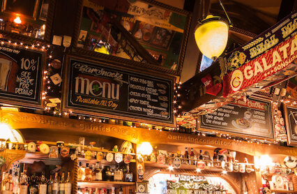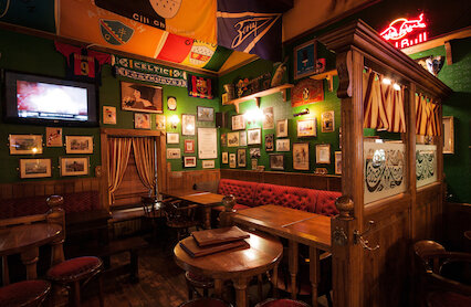 - Паб с футбольными трансляциями, рок-н-роллом и стейками