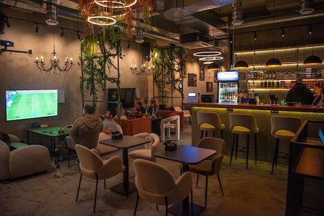 - Бар с кальянами, коктейлями и спортивными трансляциями