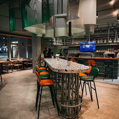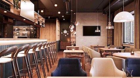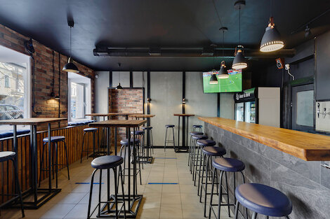 - Стильный лаунж-бар и ресторан со спортивными трансляциями и игровыми приставками