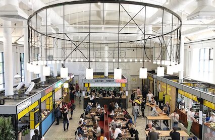 Это исторический рынок на Большом проспекте В. О., 16/14б, который после реконструкции превратился в гибрид продуктового маркета и фуд-холла. Внутри под одной крышей работают лавки с фермерскими сырами, специями, рыбой и фруктами, а рядом — корнеры с разными кухнями. Часть пространства выходит во внутренний двор: летом там ставят деревянные столы и экран для вечерних киносеансов.
