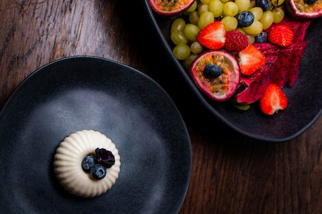 - Ресторан с блюдами на открытом огне в загородном лодж-отеле We Lodge
