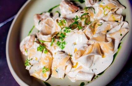 - Небанальная итало-грузинская кухня, увлекательные коктейли, вино и тёплая атмосфера