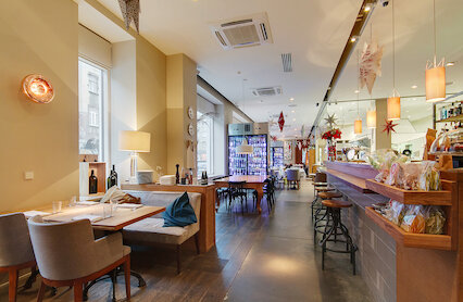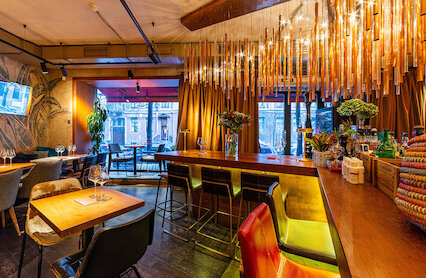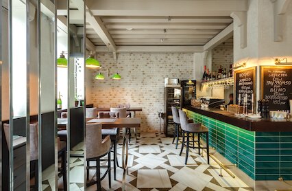 - Трендовый ресторан с дизайнерским интерьером, интересным вином и блюдами из испанского гриля