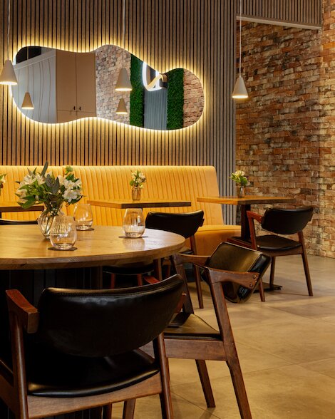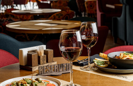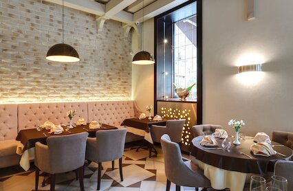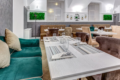- Ресторан с атмосферой отельного лобби и игристым на завтрак