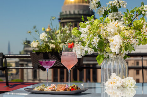 - Сезонный видовой бар на крыше отеля 5*. Авторские коктейли, редкие вина и азиатские закуски