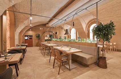 - Банкетный ресторан с лаконичным интерьером и собственным закрытым двориком