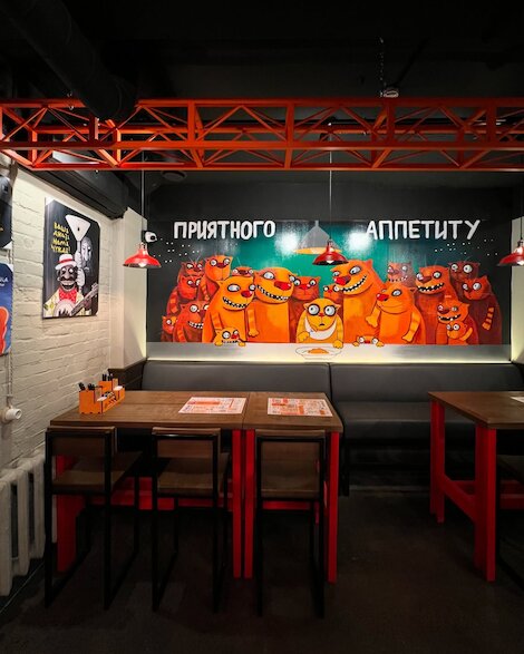 - Бургерная с брутальным интерьером и фирменной пиццей