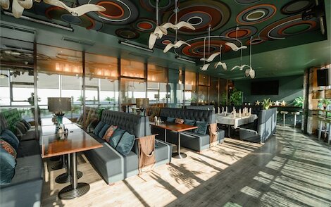 - Панорамное кафе со смешанной кухней, видом на бухту и боулингом