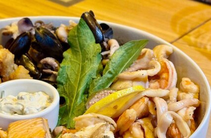 - Панорамное кафе со смешанной кухней, видом на бухту и боулингом