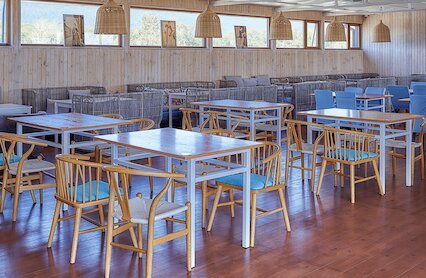 - Двухэтажный рыбный ресторан в стиле морского корабля